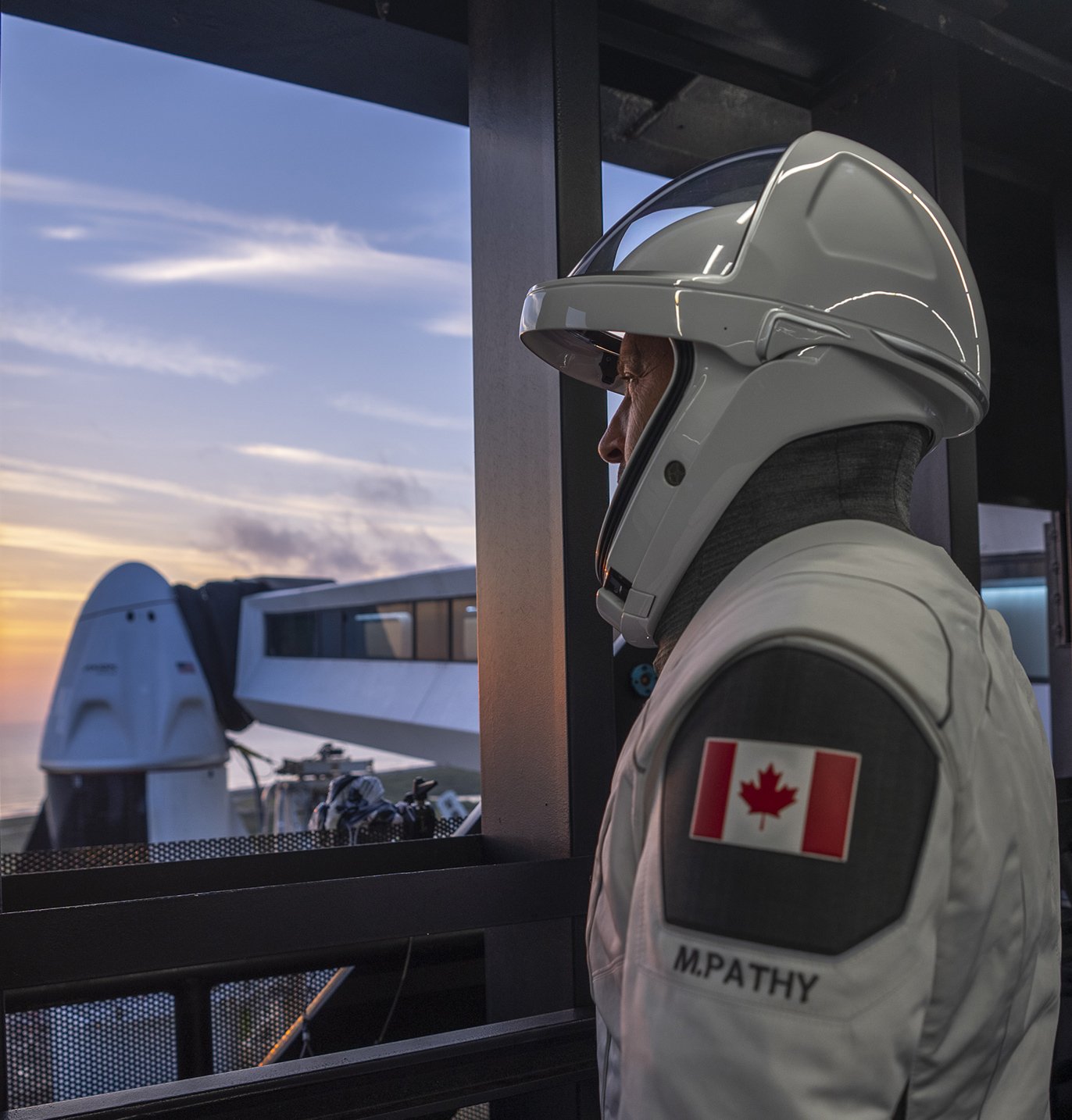 The 3-D printed helmet with customized padding houses microphones for communication and valves that regulate the suit’s pressure systems.